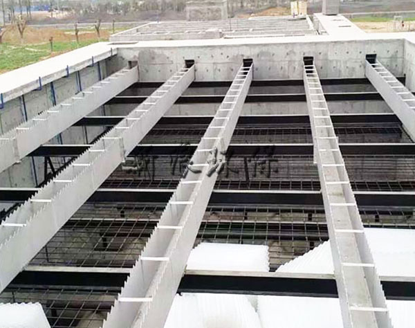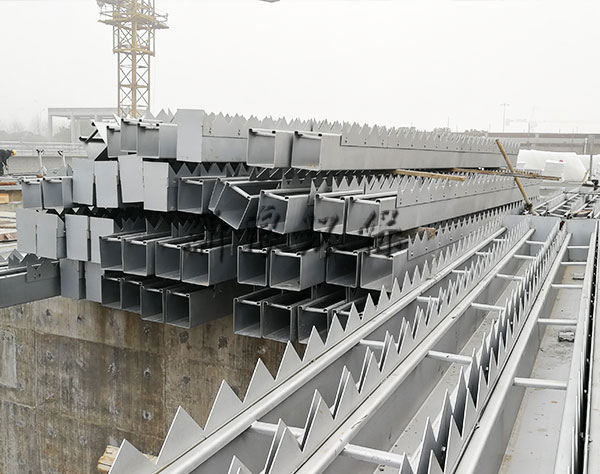 集水槽是用來均勻收集溢面清水的設備,主要用于沉淀池的出水端,常采用條形孔式或鋸齒式。斜管斜板沉淀池表面均勻布置集水槽、圓形澄清池采用環繞槽或配置輻射槽、污水廠終沉池采用圓形集水槽。